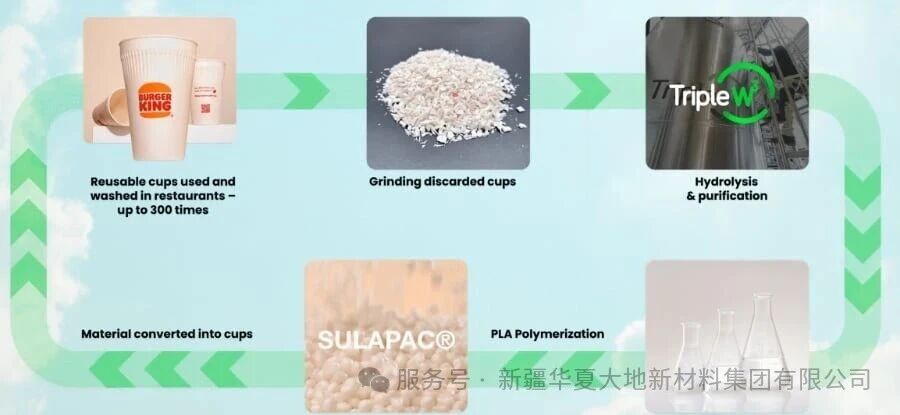 In the pilot project, once these PLA water cups reach their service life, they will be uniformly collected, crushed, and then undergo hydrolysis to extract basic components such as lactic acid. Lactic acid has a wide range of applications and can be used in personal care and the pharmaceutical industry. It can also be reconverted into biopolymers through the high-efficiency recycling process "Poly to Poly" developed by the Belgian TripleW company.