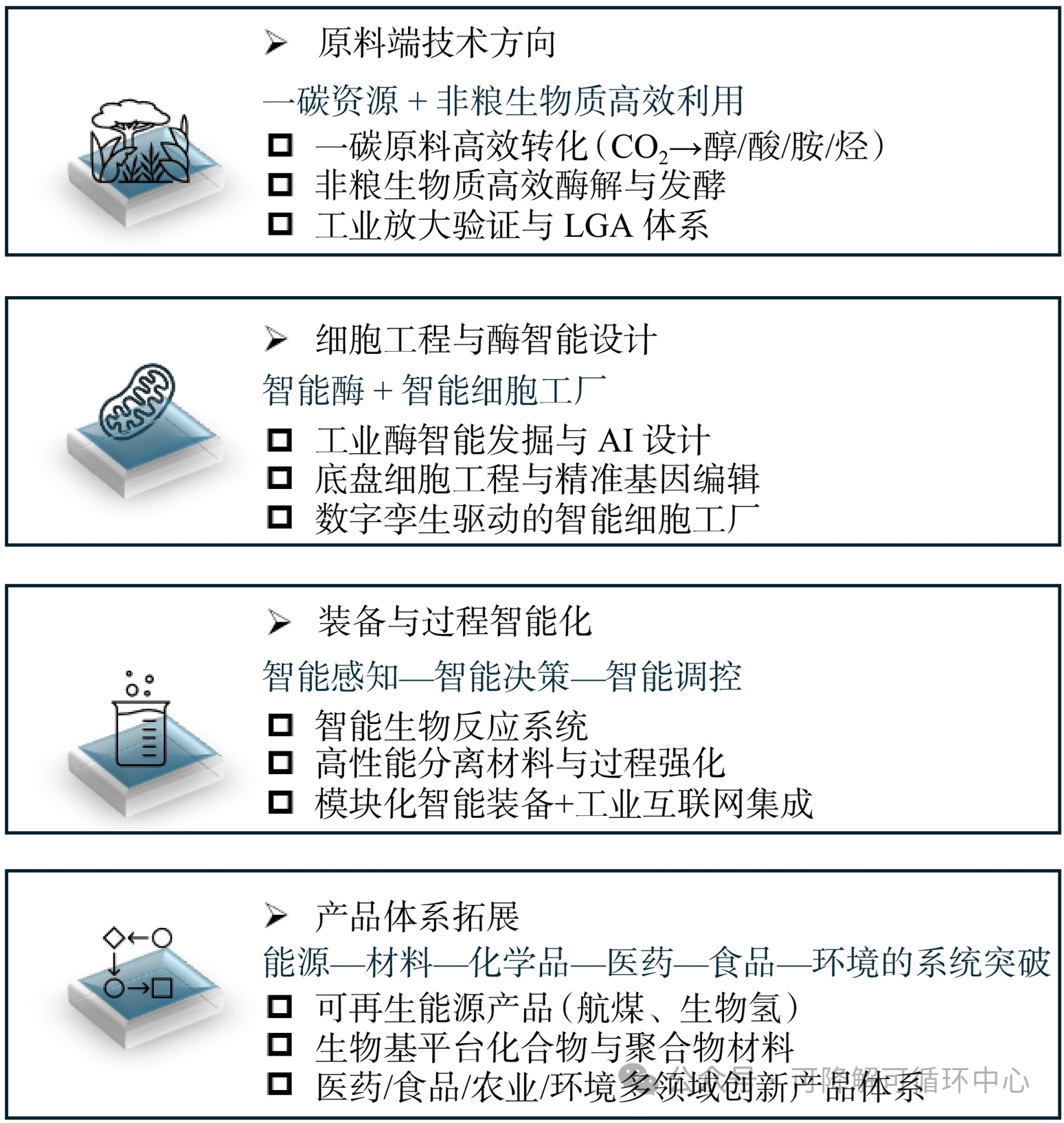 未来,生物制造将着重突破智能细胞工厂、精准生物发酵与核心装备国产化等关键技术,构建更高效、稳定、安全的制造体系。智能化技术的深度融入将推动生物制造由经验驱动向“计算驱动−−智能决策”转型,加速细胞工厂设计、路径重构与过程优化。同时,非粮资源和一碳原料的广泛应用,将为生物制造开辟全新的原料供应渠道,减缓传统粮食资源与生物制造之间的竞争与矛盾,提升产业韧性。
