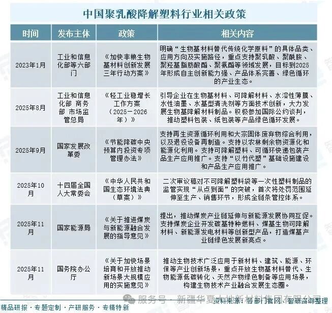 从《加快非粮生物基材料创新发展三年行动方案》《轻工业稳增长工作方案(2025—2026年)》等专项产业引导政策,到《节能降碳中央预算内投资专项管理办法》等专项资金支持机制,再到《中华人民共和国生态环境法典(草案)》等法治保障措施,形成了覆盖产业规划、技术创新、资金扶持、场景拓展和合规监管的全链条政策闭环,为聚乳酸降解塑料行业的规范化发展、规模化应用与高质量升级提供了坚实而系统的制度支撑。