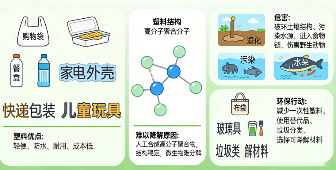 Plastic is a ubiquitous and commonly used material in our lives. It is lightweight, waterproof, durable and cost-effective. From shopping bags, lunch boxes, beverage bottles, to the exteriors of household appliances, courier packaging, and children's toys, it permeates every aspect of our daily life, greatly facilitating modern living. However, at the same time, plastic has brought about an irreversible environmental problem - it is extremely difficult to be naturally decomposed.